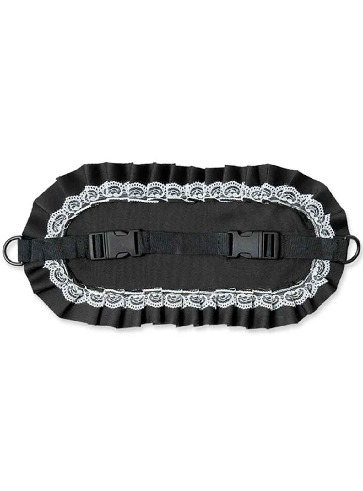 La decoración de encaje le añade un toque clásico, mientras que en la parte central destacan unas tiras que imitan los enganches de un cinturón, brindando un contraste entre lo clásico y lo alternativo. A los extremos de las tiras, hay unas pequeñas argollas metálicas, que puedes dejar así o personalizarlas añadiendo tus propios accesorios.
