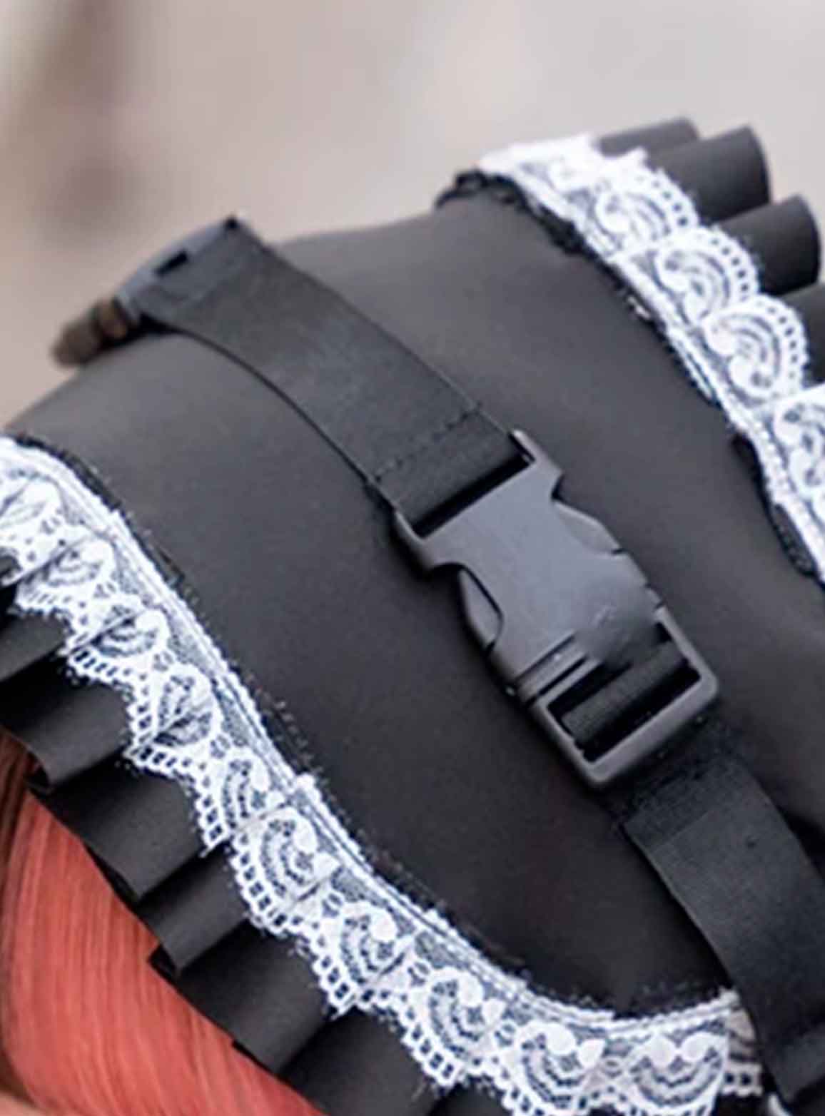 El tocado Jersey Kobayashi es el accesorio perfecto para completar tu look Yami Kawaii. Inspirado en la moda Lolita, tenemos este tocado de diseño ovalado alargado con volantes que rodean todo su contorno, dándole un aire delicado y femenino.